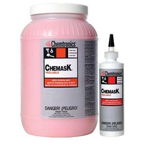 Chemask® is a fast curing peelable solder masking agent. It contains natural latex formulated with high-temperature resistant compounds that protect component-free areas during wave soldering. Chemask® may be used to protect pins, posts, contacts and edge connections during conformal coating processes.