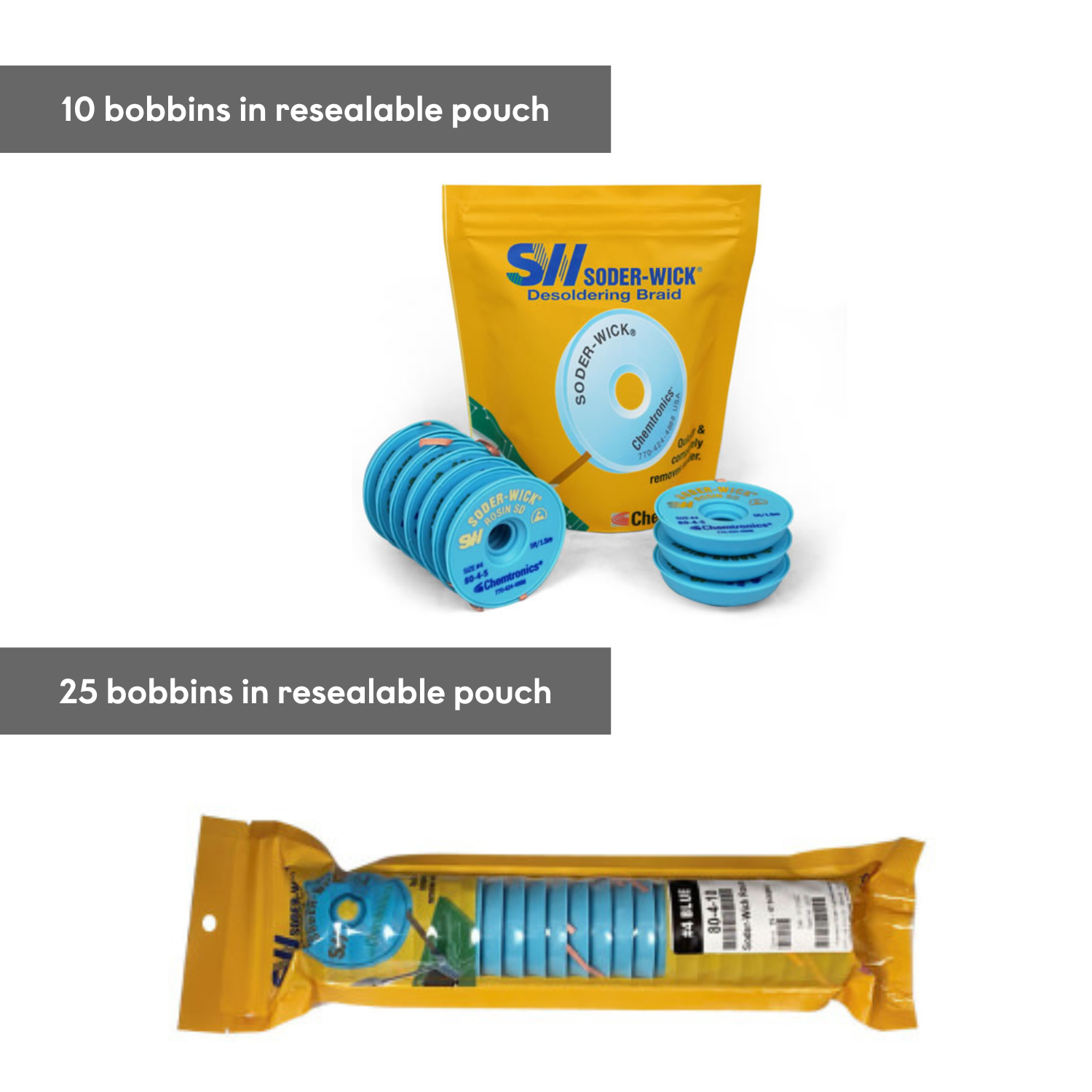 Solder-Wick brand desoldering wick offers the state of the art in desoldering technology. Soder-Wick is designed for today’s heat sensitive electronic components using lighter mass, pure copper braid construction that allows for better thermal conductivity, even at low temperatures. Soder-Wick responds faster than conventional desoldering braids thereby minimizing overheating and preventing PCB damage.